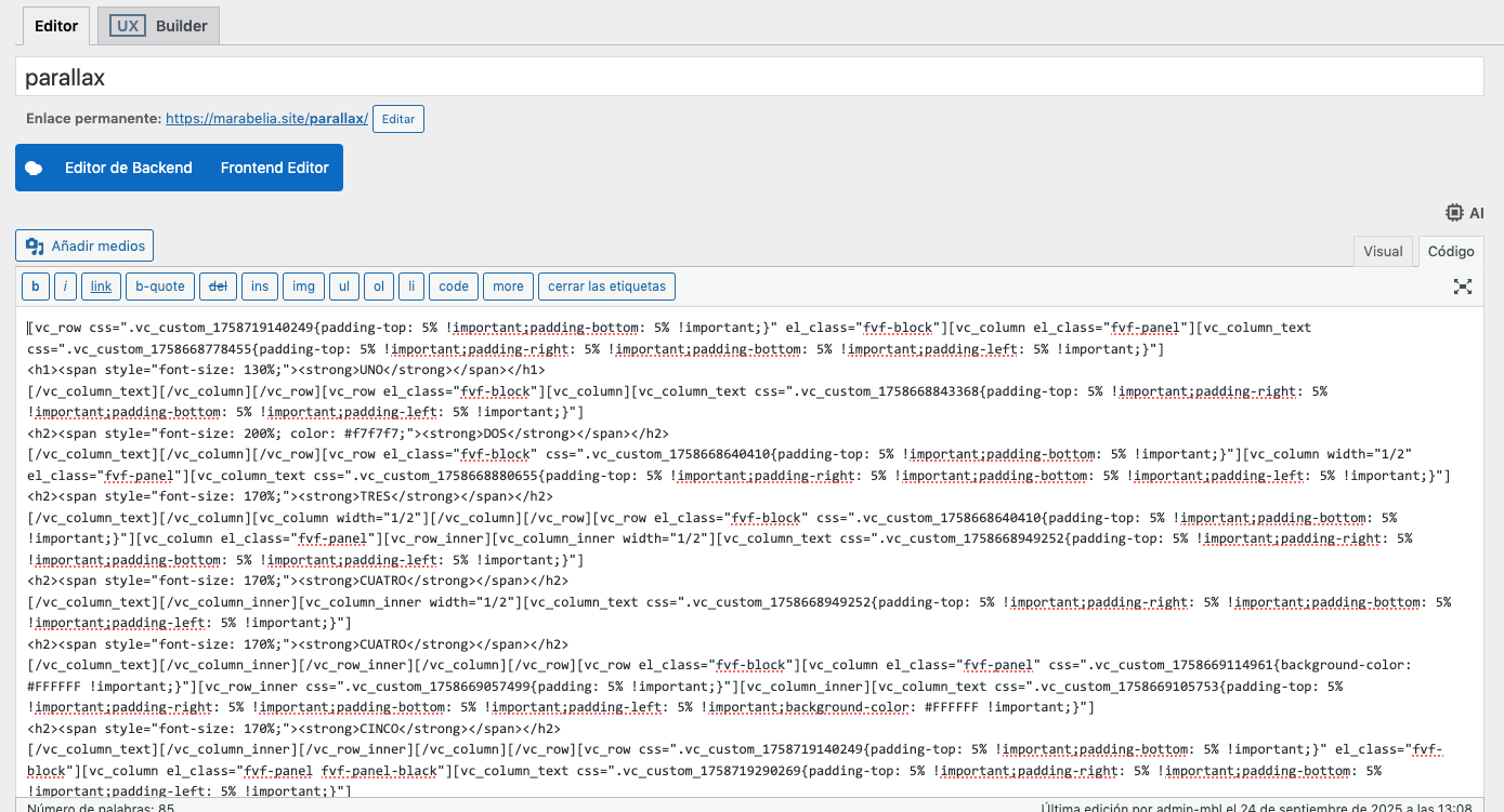 Parallax Vídeo Fijo para WPBakery